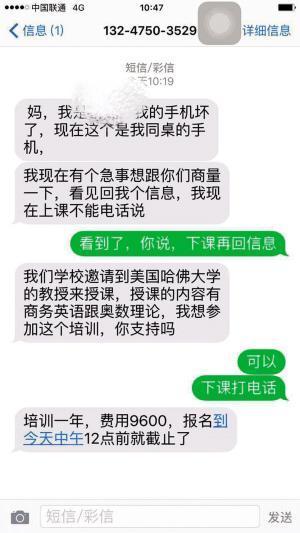 “对方可能就是想利用这一个时间差来行骗。”王老师称,如果家长收到类似的短信,最好不要通过短信或者微信确认,尤其是涉及到要交费的情况,最好电话或者当面确认。