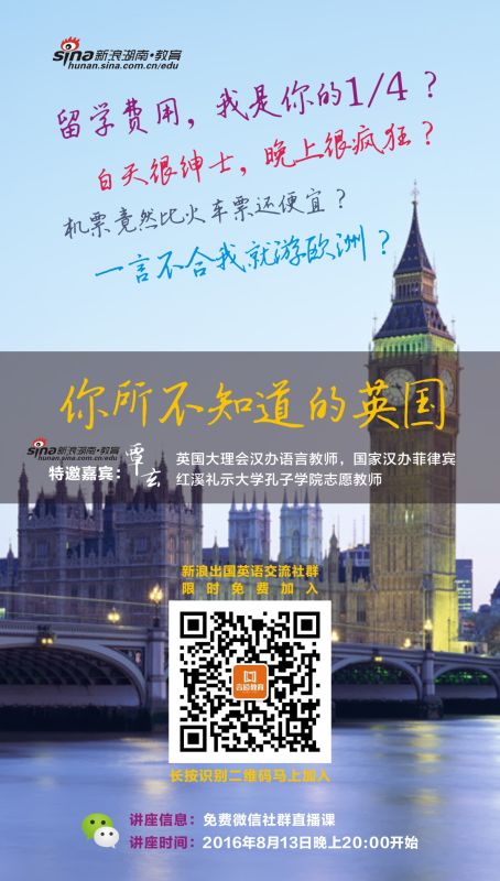 新浪湖南教育频道联合言通教育,将在2016年8月13日晚上20:00,为大家送上精品微信社群直播课——你所不知道的英国。