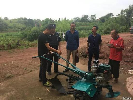 颜昌新承包这么多田,感觉劳力不足,一筹莫展。立马向巡特警反映情况。巡特警大队得知颜昌新这一现实情况,大队长李晓军组织民警集资2500元,在农机局购买一台小型耕耙机资助。颜昌新有了耕耙机,省了放牛的功夫,而且耕地速度快,干劲十足。