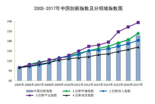 统计局:2017年中国创新指数为196.3 增长6.8%