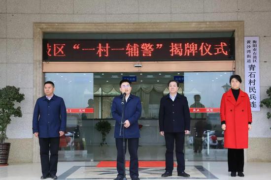 12月19日上午,石鼓区“一村一辅警”揭牌仪式在黄沙街道青石村举行。仪式由副区长、公安分局党委书记、局长朱建社主持,政法委书记赵伟出席仪式并讲话。