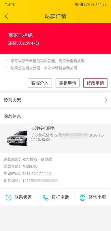 然而,取消了订单后的龙女士却得知,自己的退款申请居然被拒绝了。这让她百思不得其解:在没有单方面爽约,又没有享受到服务的情况下,为什么连退款也不行?