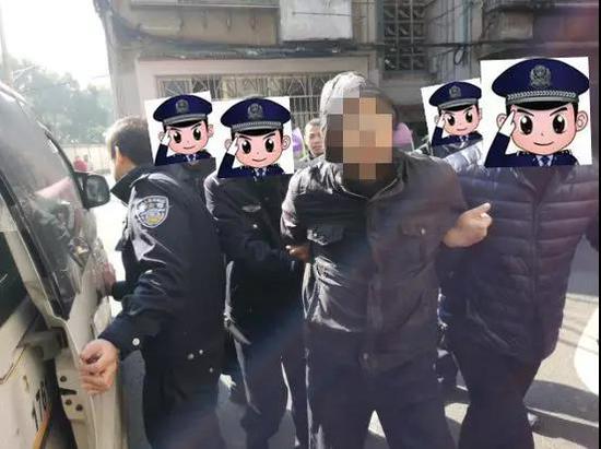 民警立即向带班所领导汇报情况并请求增援。在分局邹爱云副局长的指挥调度与巡特警大队的支持协作下,粤汉所所长王仕福、教导员刘弘剑带领所内精干警力兵分两路,所长王仕福、民警汪细明不断地做其思想工作,分散其注意力,另一路民警与巡特警趁其不备,从后面将其成功控制。最后在其家人的陪同下,顺利将其送至衡阳市第一精神病医院就诊。