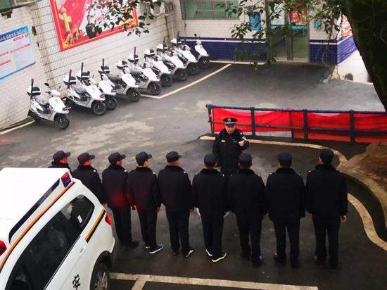 2019年1月8日上午9时,茶山坳派出所所长谢伟带队将驻村辅警交接给镇政府综治办,综治办将各个驻村辅警介绍给村部,茶山坳镇的一村一辅警工作正式开始了。