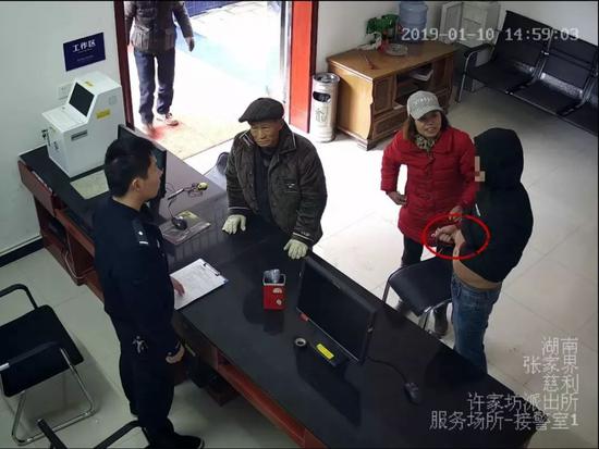 1月10日,张家界市慈利县许家坊派出所摊上“ 大事儿 ” 了,一男子在许家坊派出所接警大厅,一把撩起上衣,拿出随身携带的折叠水果刀,抵在肚皮上,大喊:“ 把我的肾取出来,看值多少钱?” 男子这一举动,引来不少群众围观。