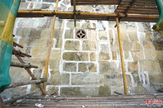 掌上衡阳客户端7月22日讯(记者王翟) 7月22日,记者从来雁塔修缮项目部了解到,目前来雁塔塔体内外清理工作已完成,正在进行塔体加固以及塔院基础设施施工,砖瓦、栏杆等外构建也在加紧制作中,项目力争年底前完工。