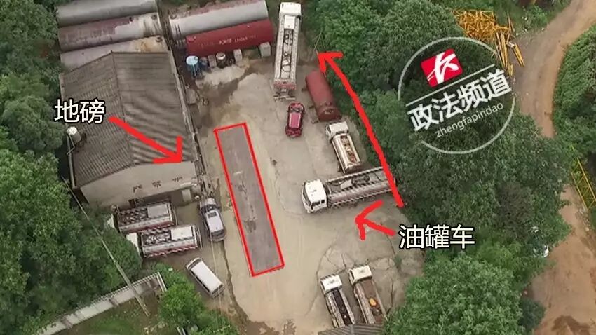 为了更加清楚的看清这个院子的全貌,特攻记者动用了航拍设备,通过高清镜头,能清楚的看到,整个院子里面规模不小,有大小七个储油罐,还有六七辆油罐车,在院子中间还有一条十多米长的地磅,设备显得非常专业。