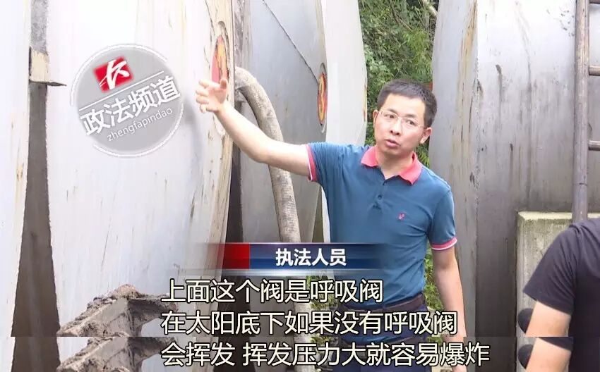 经过执法人员现场了解,这辆满载31吨柴油的油罐车无法出具进货单,来源可疑。而在室外的四个储油罐中,还存有大量柴油。