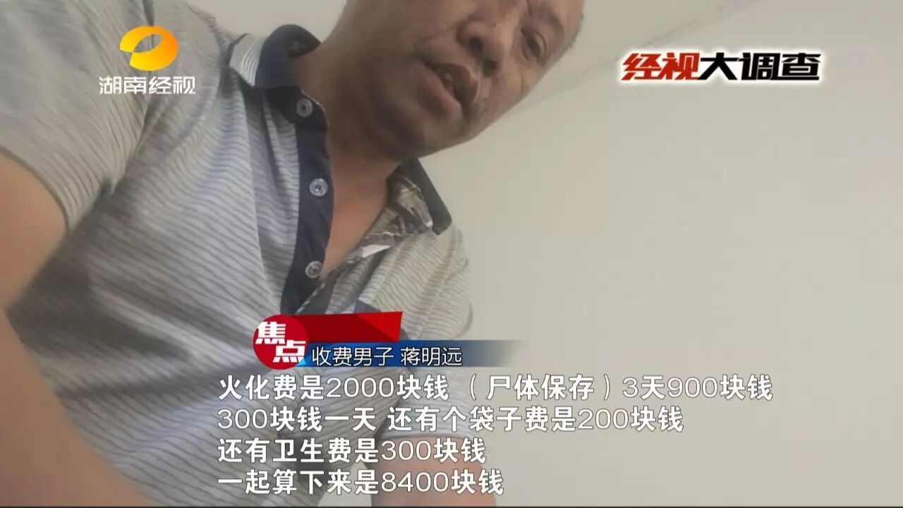 蒋姓男子表示,如果每具遗体不交这8400元,就别想把遗体运出去!