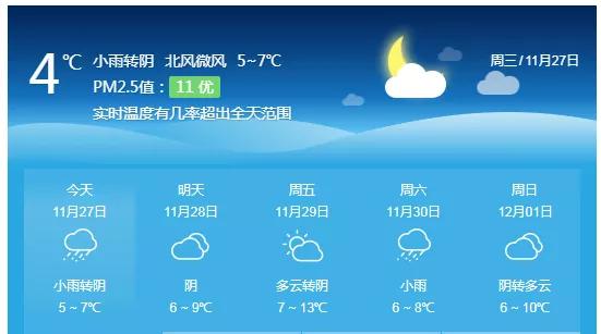 另外据中央气象台预计,今天(27日),新一股弱冷空气将给内蒙古东部和东北地区带来4℃到6℃、局地8℃的降温,降温过后上述地区最高气温普遍在零度以下,寒意升级。后天,还将有新一股冷空气来袭,北方各地气温又将明显下滑,以北京为例,后天最高气温将降至仅有1℃。