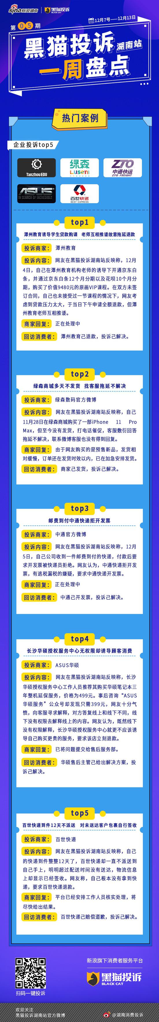 潭州教育诱导学生贷款购课 老师互相推诿故意拖延退款;绿森商城多天不发货 找客服拖延不解决;邮费到付中通快递拒开发票;长沙华硕授权服务中心无权限却诱导顾客消费;百世快递到件12天不派送 对未送达客户包裹自行签收;。。。。。。湖南消费维权联盟投诉TOP企业为@潭州教育 @绿森数码官方微博@中通官方微博 @ASUS华硕@百世快递 更多详情戳下图↓↓↓ 守护湖南人的消费权益。