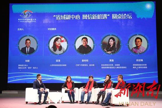 当天,大会还举行了圆桌论坛。人民网湖南频道总编辑匡滢,芒果TV党委委员、副总裁易柯明,新浪湖南总经理、总编辑黄盈,潇湘晨报副总经理、腾讯·大湘网总编辑肖世锋、“夜听”创办人刘筱等国内知名网络大伽,围绕“省域副中心,网信新机遇”这一话题,进行深度对话与交流。