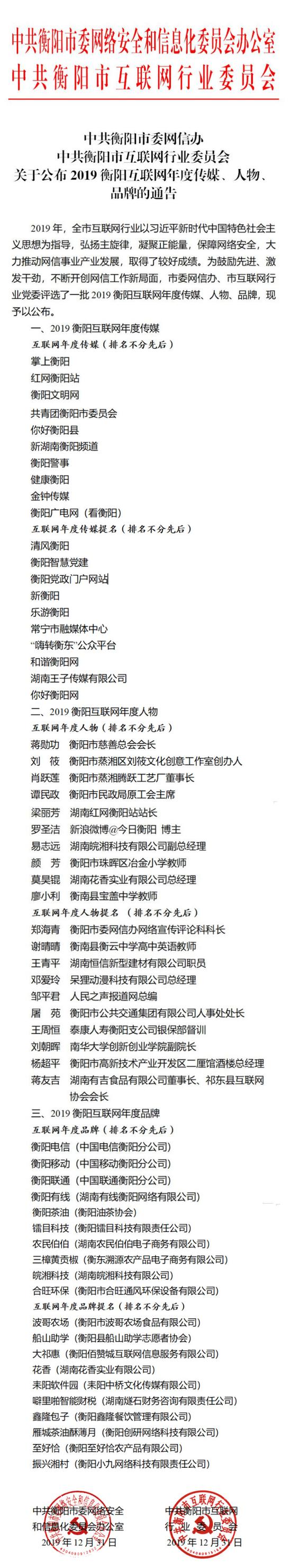附:2019衡阳互联网年度传媒、人物、品牌获奖名单