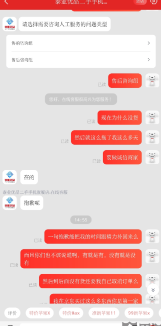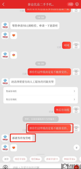 3月31日晚,网友在湖南消费维权联盟反映称:3月28日在京东下单一价值1566元的二手华为P20手机,下单时卖家说有货。三天过去了,订单没有发货动静。咨询客服,客服却说没货了并表示返10元赔偿金。网友不接受此处理办法,商家回复“那就继续等发货。”网友认为商家这是虚假发货拖延时间,欺骗消费者。