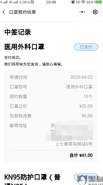 4月20日下午4:07分,网友在湖南消费维权联盟反映称:4月4日在广药健民网35元下单10个外科口罩,运费6元。直到4月16日没有收到快递,于是关注了广药健民公共账号查询到了快递单号,但复制此单号到EMS却查不到单号没有物流信息,询问客服几次没有收到回复。