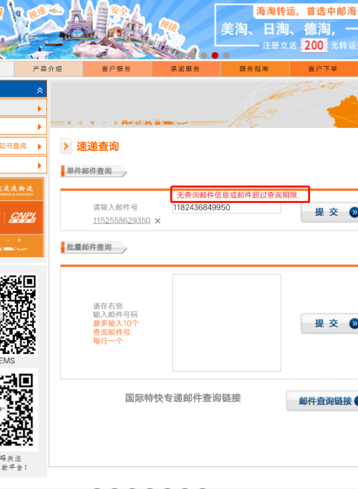 4月20号下午5:25分,@中国邮政 在湖南消费维权联盟回复网友:给您添麻烦了,在EMS邮件信息系统中没有这个邮件的信息。在这种情况下,请寄件人持邮件详情单到收寄部门办理查询。谢谢。