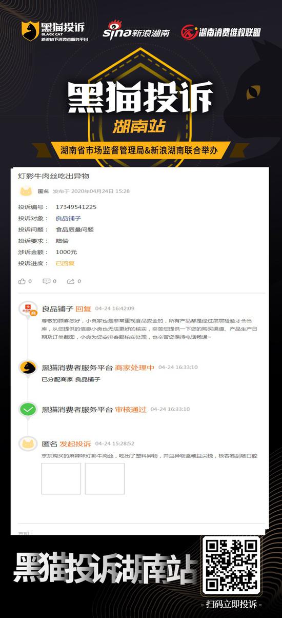 4月24下午16点42分,@良品铺子 在湖南消费维权联盟回复称,小良家也是非常重视食品安全的,所有产品都是经过层层检验才会出库,请网友提供购买渠道、产品生产日期及订单截图,小良会安排客服核实处理。后续进展,我们将持续关注,投诉详情:https://tousu.sina.com.cn/complaint/view/17349541225湖南消费维权联盟,守护湖南人的消费权益,本地投诉入口链接:https://hunan.tousu.sina.com.cn/。