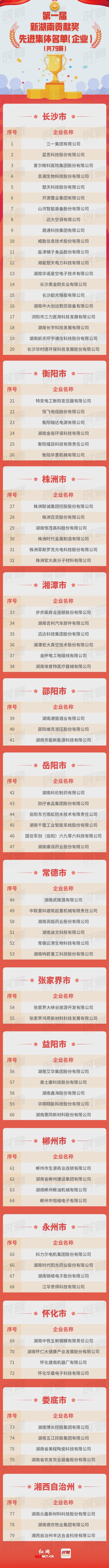 根据表彰《决定》,授予三一集团股份有限公司等79家企业“新湖南贡献奖先进集体”称号;授予周晓州等99名同志“新湖南贡献奖先进个人”称号。