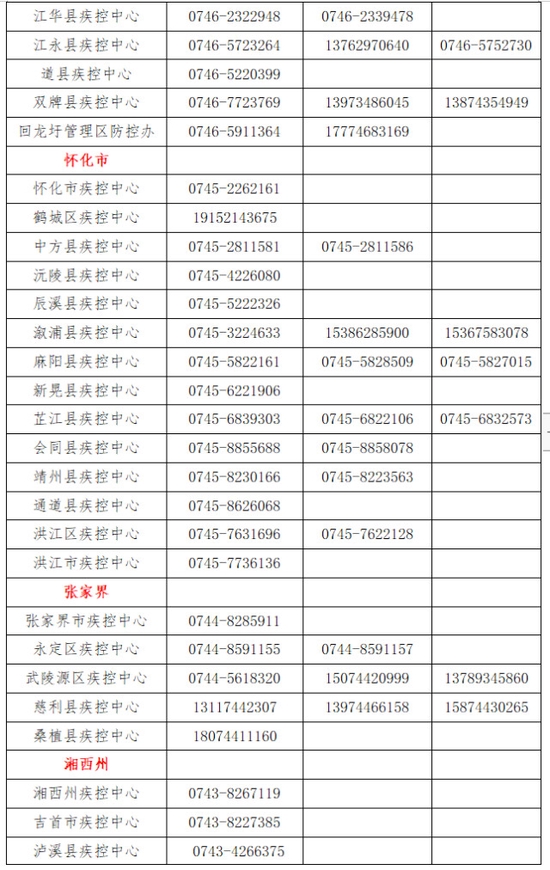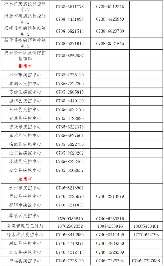 湖南省各地健康码咨询服务热线