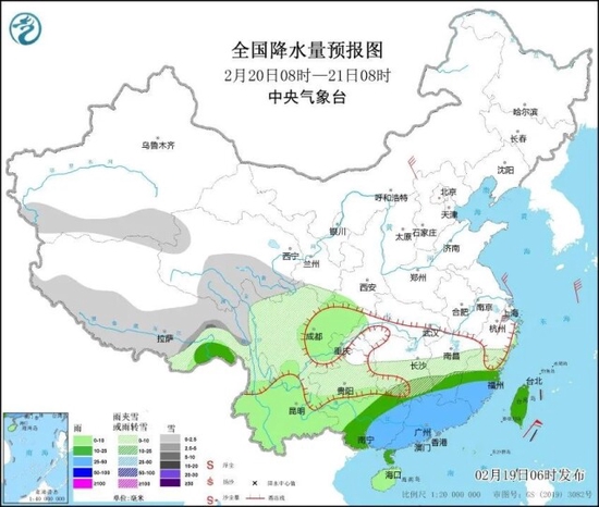 中央气象台预报显示,今天开始,北方地区的降雪将告一段落,预计19日至22日,雨雪将集中在江南、华南和西南地区,广西东部、广东西部等地部分地区有暴雨,上述部分地区伴有弱雷电活动。