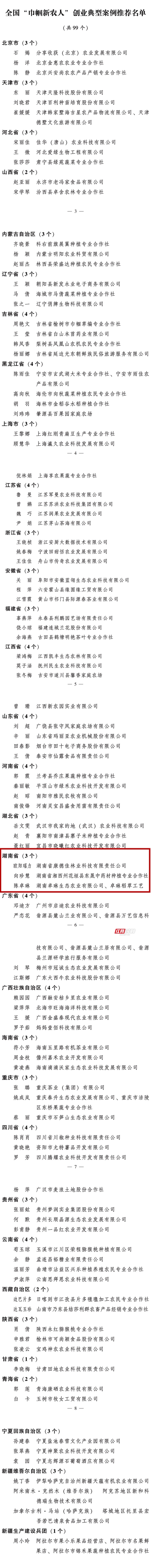 全国 “巾帼新农人” 创业典型案例推荐名单