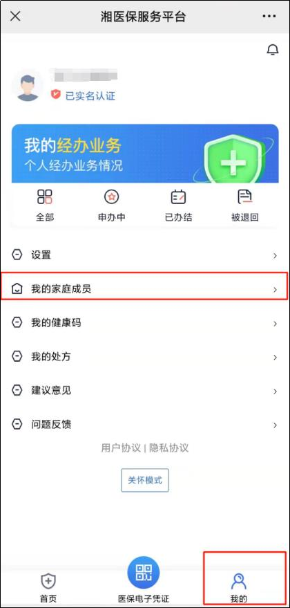 二、登录完成后,点击右下角“我的”,随后点击“我的家庭成员”。