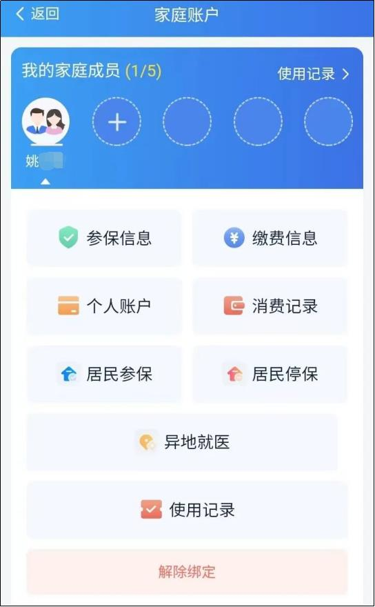 ▲个人页:被绑定的家庭成员个人页