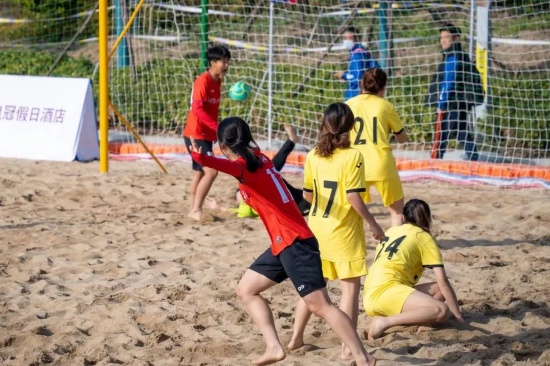 首届中国大学生沙滩足球锦标赛11月3日在江苏省启东市蝶湖公园火热开赛。受邀中国大学生体育协会参加本次比赛的队伍都是各省具有影响力和竞技实力挑选的高水平足球队高校,共有16支队伍。本届赛事是由中国大学生体育协会主办的首届大学生沙滩足球比赛,旨在推广沙滩足球文化,鼓励各高校积极参与沙滩足球运动,促进校园体育竞赛和文化的发展与交流。为做好本届比赛的竞赛组织工作,中国大学生体育协会曾于今年八月在象山举办了首届沙滩足球教练员、裁判员培训班,有效推动了该项目在高校领域的普及和发展。