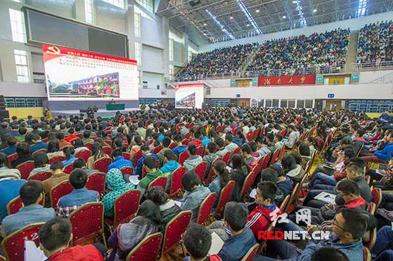 今天上午,省委书记、省人大常委会主任徐守盛来到湖南大学,作题为《把握大局顺应大势投身大业 坚定道路自信理论自信制度自信》的形势报告,并与学子们交流。(明健飞摄)