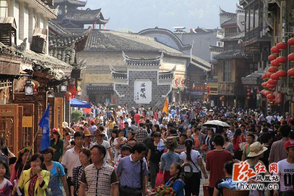 游人如织秩序井然!点赞(小编告诉你:黄金周首日凤凰古城的游客接待量就居湖南之首了,世界各地的游客都把目光投向凤凰,可见美丽不是吹的哦!小小的凤凰城,你真不容易啊!)