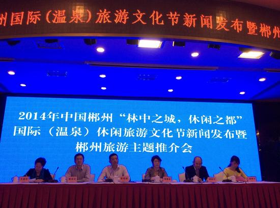 新浪湖南讯 10月20日上午,2014年中国郴州“林中之城,休闲之都”国际(温泉)休闲旅游文化节新闻发布暨郴州旅游主题推介会在长沙召开,宣布本届旅游节将于11月8日在郴州汝城县开幕,持续至11月23日,期间将举办27项主题活动。郴州市委常委、副市长张爱国表示,本届旅游节将以体验温泉为主要内容,全力助推郴州市“中国温泉之城”建设。