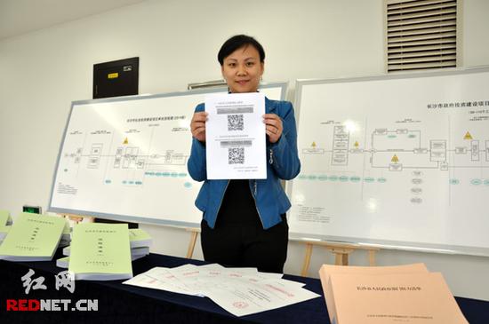 (“清单很厚,二维码一扫就明白”,发布会后,长沙市政府工作人员展示厚厚四大本的权利清单、流程清单,并向公众推荐用手机二维码随时查询,方便办事。)
