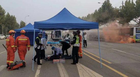 据悉, 此次演练旨在检验道路交通事故应急救援预案和救援体系的可行性和操作性,验证应急救援抢险器材和装备的适应性,以及交警部门与辖区各应急联动单位处置突发性交通事故的组织协调能力。