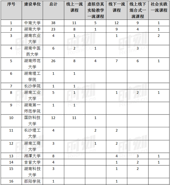 湖南入选首批国家级一流本科课程公示名单建设单位统计