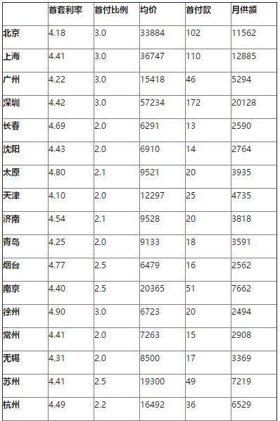 相比之下,中西部不少城市的首付款在20万以下,其中贵阳、长春和兰州位居倒数前三位,贵阳的首付款最小,为12万元。