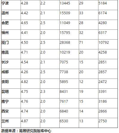 这30个城市中,房价超过2万元/平方米的城市包括深圳、上海、北京、厦门和南京。而房价低于7000元/平方米的城市包括贵阳、长春、烟台、兰州、徐州、西安和沈阳。