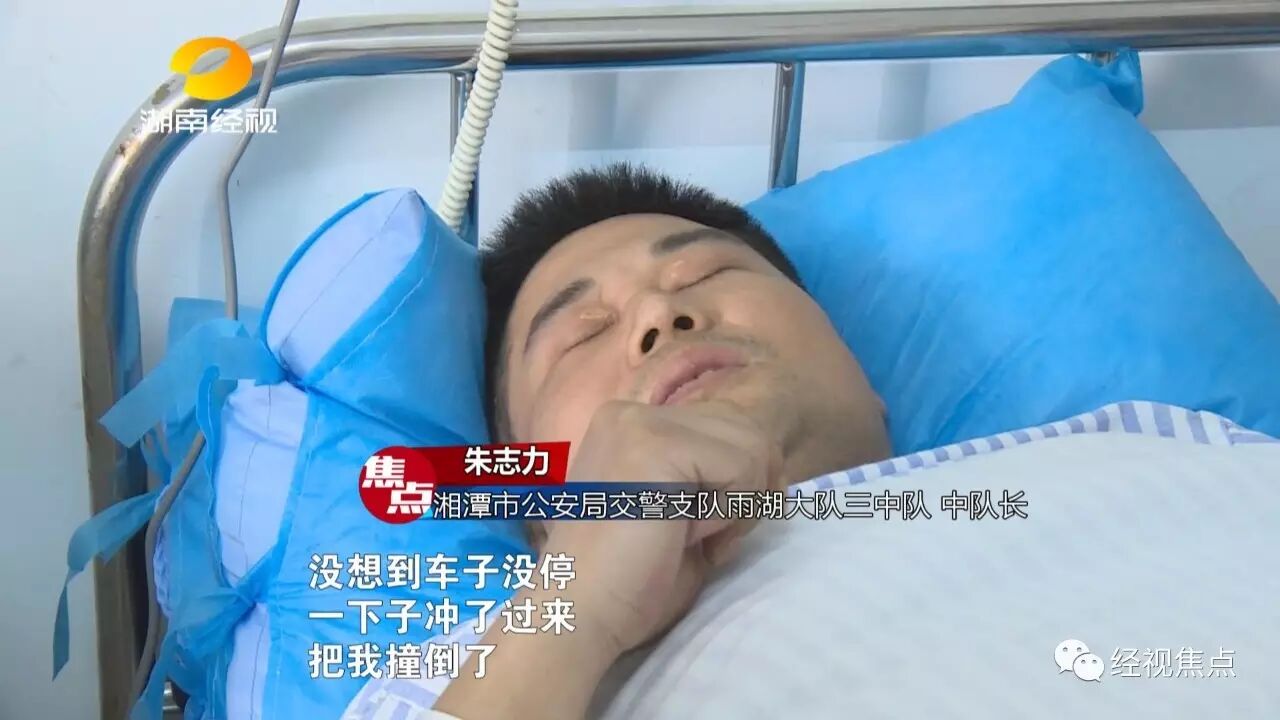 11日晚上,湘潭市公安局交警支队开展“百日会战”整治行动,在新马路上,一辆黑色现代越野车车主涉嫌酒驾被拦,车主竟然加大油门闯关,将正在前方执勤的湘潭雨湖大队三中队中队长朱志力撞倒,车辆直接从他腿部碾压过去,案发后,省委常委、省政法委书记、公安厅厅长黄关春作出批示:要求全力救治,抓捕凶手。
