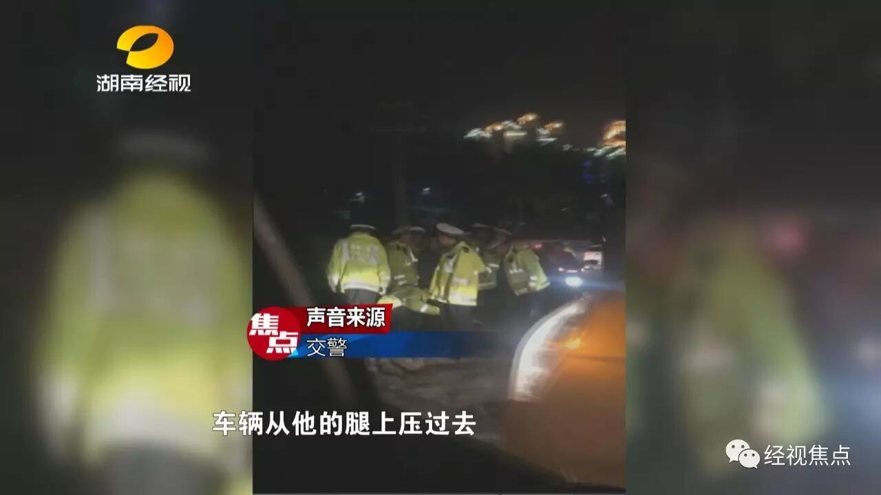 昨晚8点42分,这辆黑色越野车一辆油门,把正在前方执勤的雨湖大队三中队中队长朱志力撞倒并从其腿部碾压后疯狂逃窜。