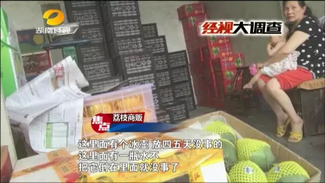 荔枝属于亚热带水果,性喜温暖,商家声称喷水就是为了降温,使得荔枝能够更好保存。