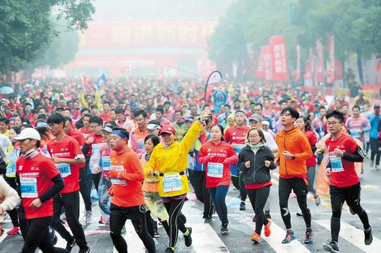 昨日,2017长沙国际马拉松赛在贺龙体育场中心鸣枪起跑,20000名选手参加全程马拉松、半程马拉松、迷你马拉松以及欢乐跑共4个项目的角逐。均为长沙晚报记者 黄启晴 王志伟 摄影报道