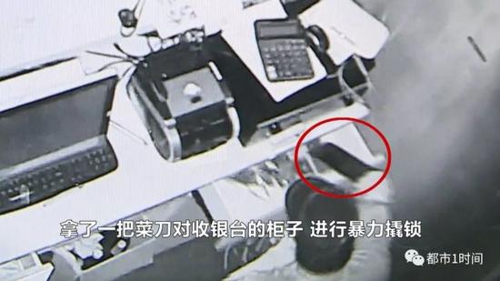 长沙警方擒获攀窗入室大盗监控显示,10月29日凌晨4点41分,这名身着浅色上衣,戴着帽子、口罩的嫌疑男子窜至洪山路这家餐馆内,在收银台翻找了一番后,发现了桌下放置的保险柜,于是他直接将保险柜给搬了出去。