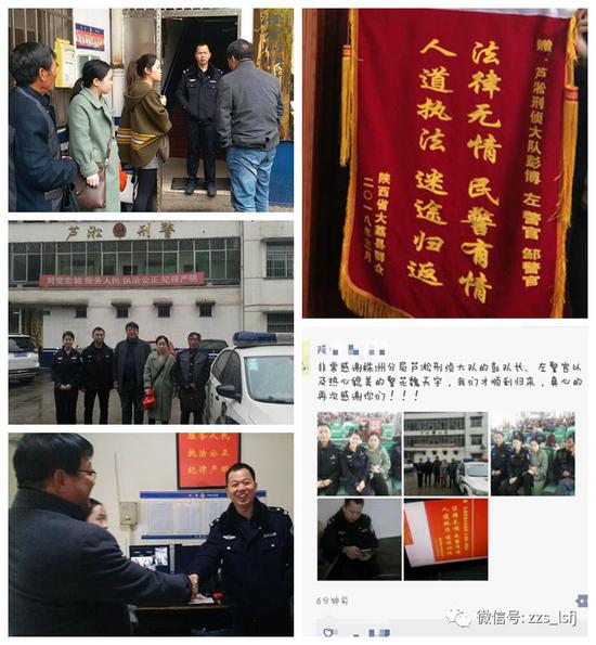 下午1点50分,在刑侦大队民警彭博的帮助下,一家人终于踏上了回陕西的火车。2月18日,小杜的堂哥发来信息说已经安全抵达陕西家中,并委托宇小编给刑侦大队民警送去了锦旗,锦旗上写着:法律无情 民警有情 人道执法 迷途归返。