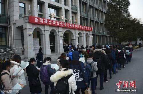 资料图:图为2018年考研中国人民大学考点,考生入考场前抓紧复习。 刘彤 摄 图片来源:视觉中国