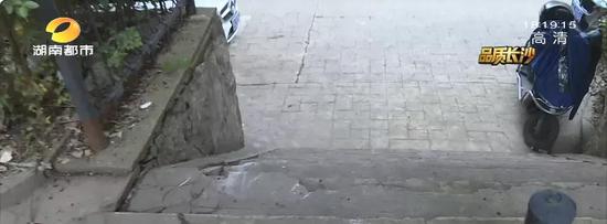 ↑↑长沙开福区的某小区,单元门口都是楼梯,没有坡道等设施,而从单元楼出来,要从上面下来还要走一段楼梯,同样没有坡道,如果是行动不便和要座轮椅的老人,是无法通过这样的楼梯的。
