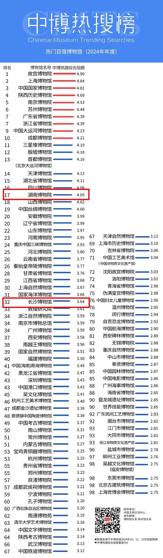 近日,2024年全国博物馆“年度热门百强榜单”正式发布。其中,湖南博物院、长沙博物馆入选。