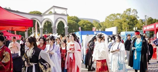 值得一提的是,本土动漫IP麦咭、虹猫蓝兔等化身打卡点、手举牌,邀请球迷打卡;着Cosplay角色装扮的NPC到场助威,与非遗摊位争相吸引年轻人的目光。现场还有多元互动游戏供游客体验——足球精准射门挑战、传统投壶雅趣体验、足球知识益智闯关、与身着汉服的“同袍”在国风秀台前合影……